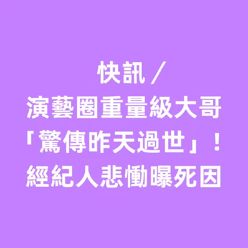 快訊/演藝圈重量級大哥「驚傳昨天過世」!經紀人悲慟曝死因