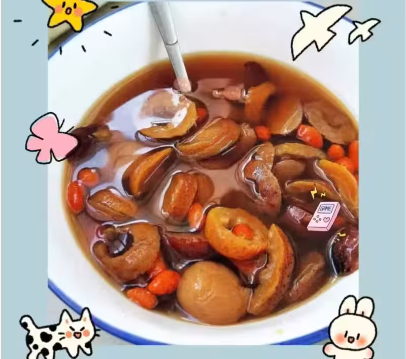 桂圓8顆、山楂片5片、紅棗6顆、紅糖1塊(根據自己的喜好來)、枸杞10粒