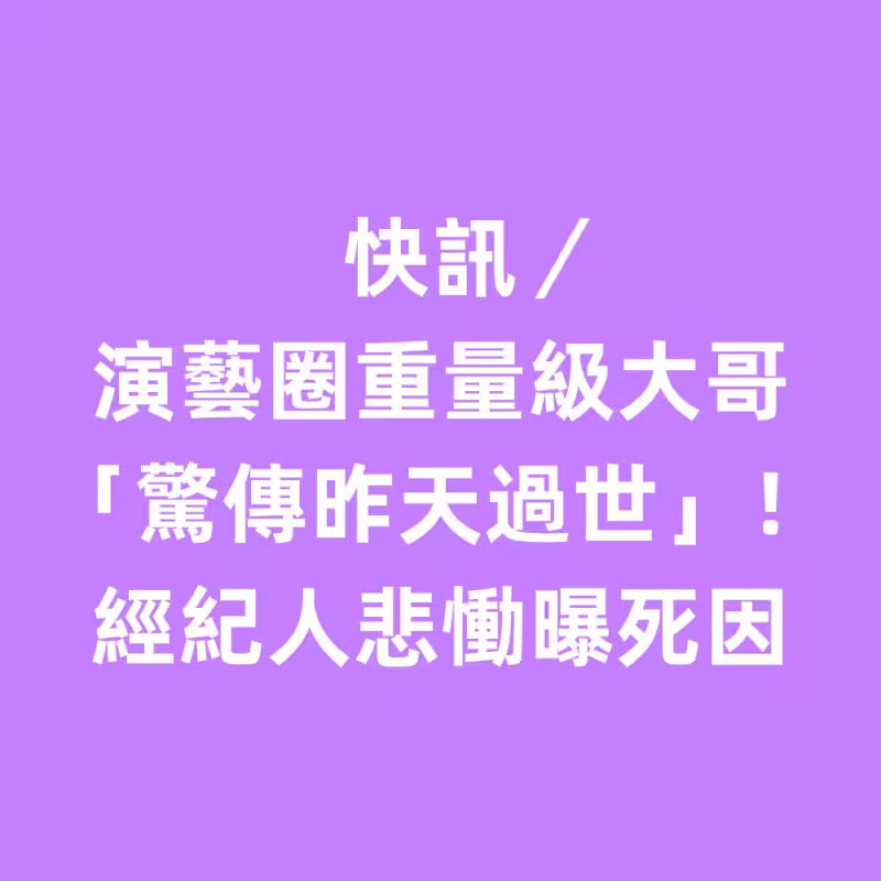 快訊/演藝圈重量級大哥「驚傳昨天過世」!經紀人悲慟曝死因.