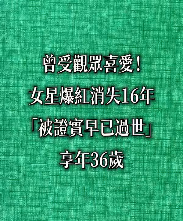 曾受觀眾喜愛!女星爆紅消失16年「被證實早已過世」享年36歲