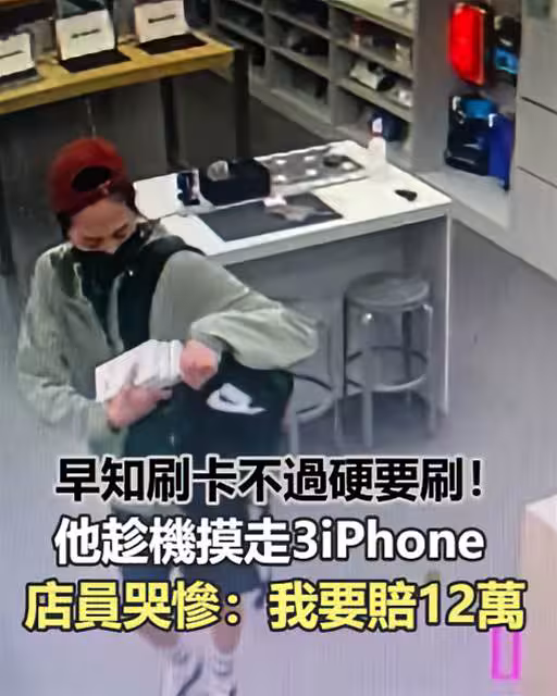 早知道刷卡不過硬硬要刷!!他趁機摸走3iPhone,店員哭慘:我要賠12萬