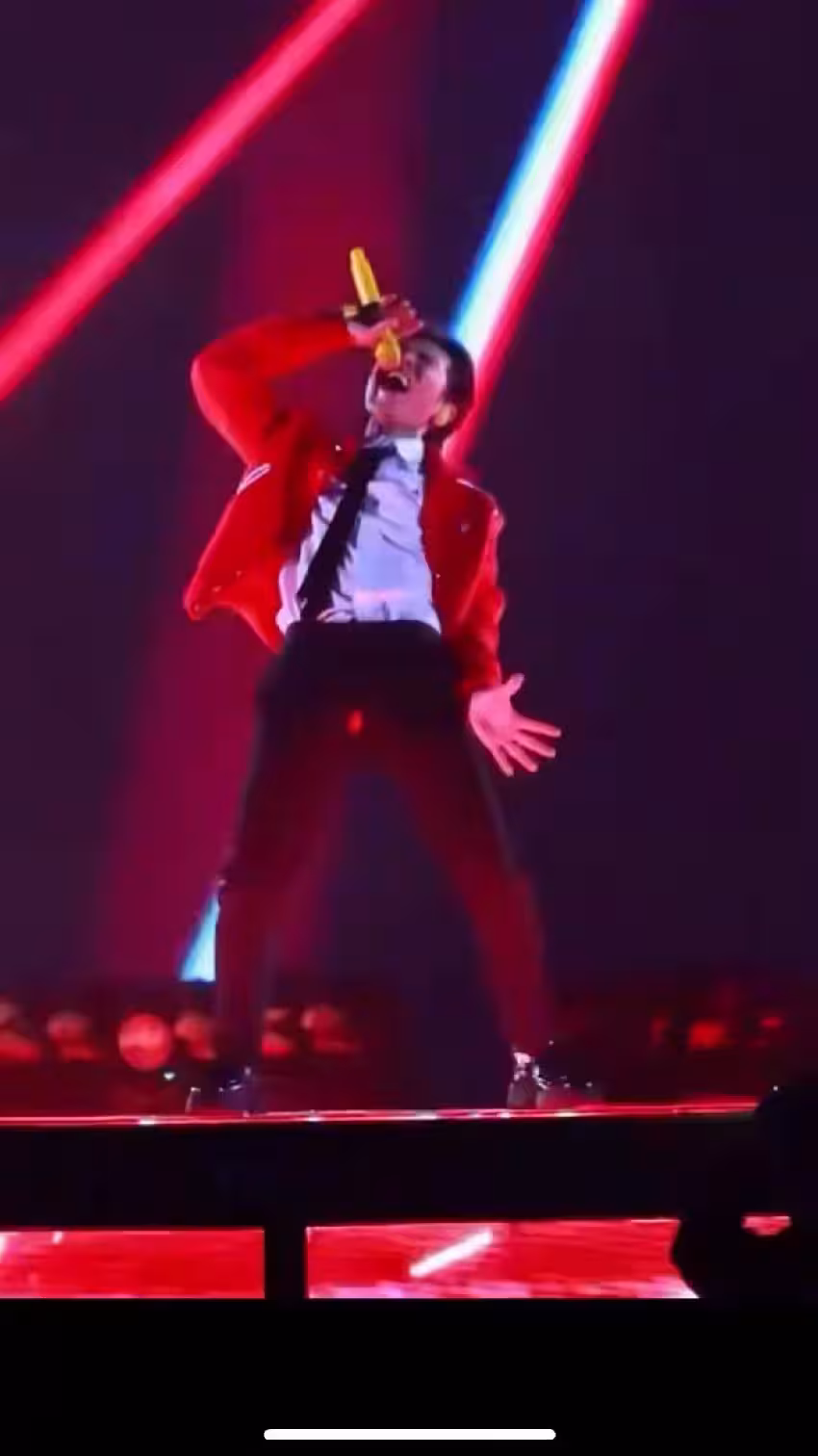 因為在演唱過程中,存在一些大幅度踢腿和下蹲動作,導致褲子的襠部突然開裂,赫然露出了紅色內褲,畫面一度非常尷尬。