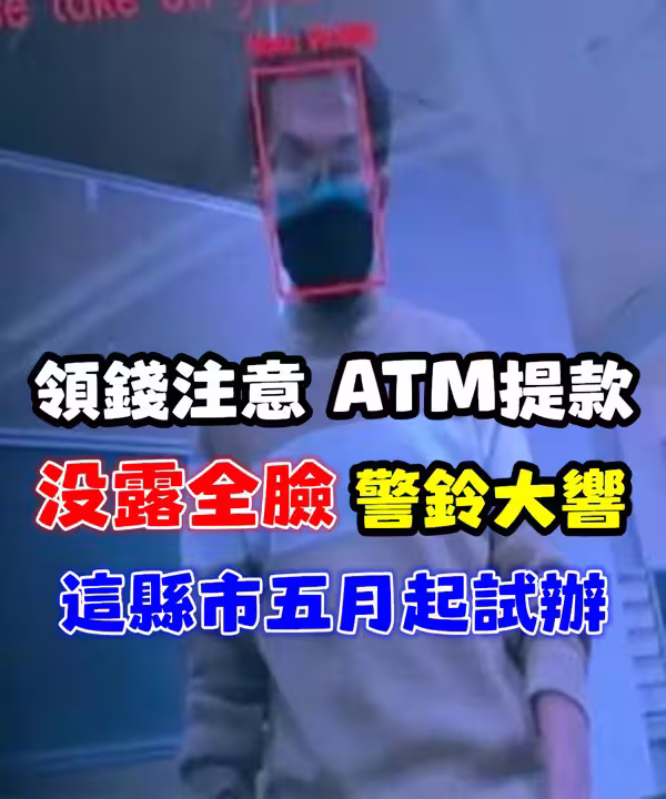 領錢注意了!!ATM提款「沒露全臉」警鈴大響,這縣市五月起試辦