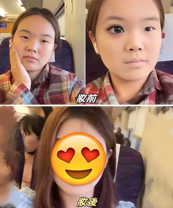 女生起晚捷運上趕妝「妝前妝後」堪比換頭,旁邊乘客看呆:這手比美顏還強大