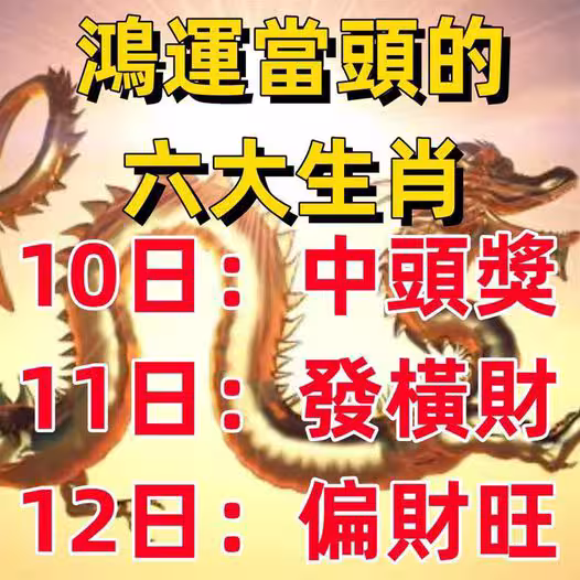 鴻運當頭的六大生肖:9月10日中頭獎,11日發橫財 ,12日偏財旺!