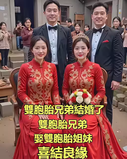 在婚禮的喜慶氛圍中,一對雙胞胎兄弟和一對雙胞胎姐妹的婚禮成為了全場的焦點。