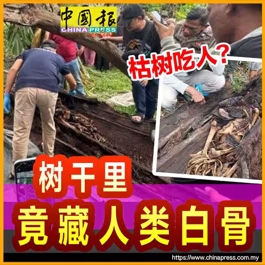 (耶加達13日綜合電)印尼當地村民因一陣強風吹倒一棵早已枯死的亞倫樹,赫然發現樹幹裂縫中竟藏有人類骨架,震驚全村。