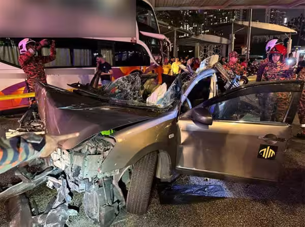 這起連環車禍於今晚11時40分,在吉隆坡漢都亞路發生;車禍涉及一輛巴士、一輛豪華型休旅車和一輛轎車。