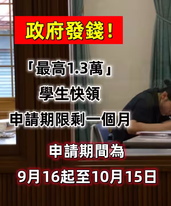 快訊/政府發錢!「最高1.3萬」學生快領 申請期限剩一個月...