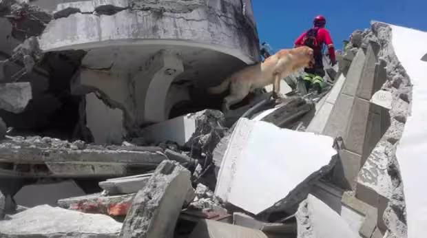 這隻搜救犬在地震災區「歇盡全力搜救」救出7位生還者後,吐舌離開人世.