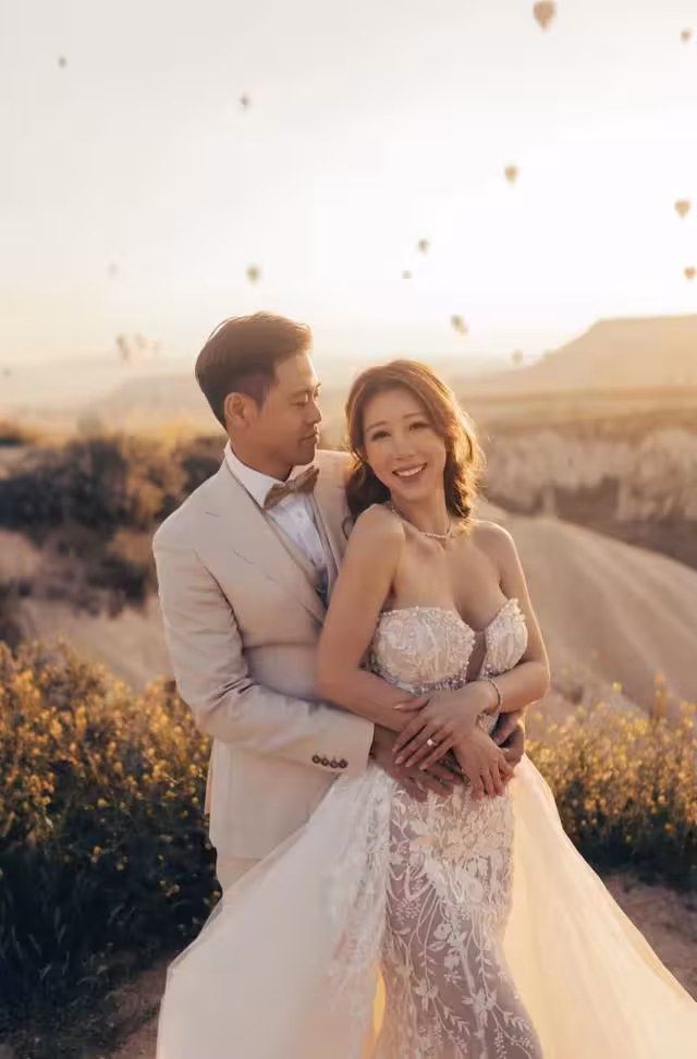 公布好消息的同時,陳婉衡還專門分享了在土耳其拍的婚紗照,她穿著抹胸禮服,禮服還有魚尾的設計,完美的襯托出陳婉衡的好身材。