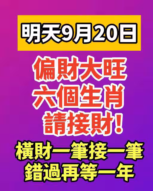 明天 「9月19號」 三生肖 橫財最旺 發久久~
