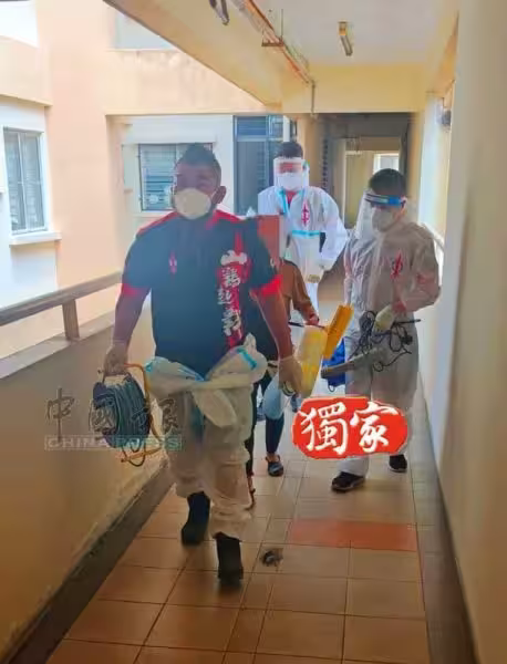 李凱鳴團隊抵達事發單位進行消毒。(李凱鳴提供)
