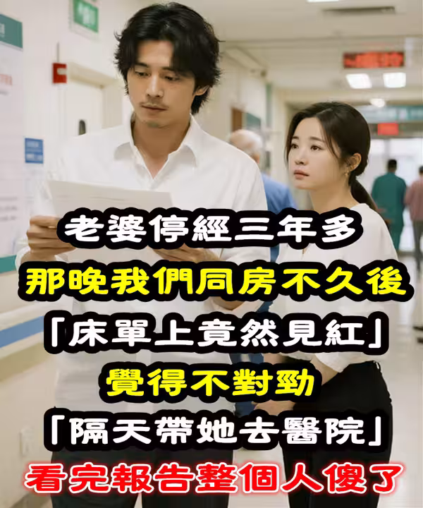 老婆停經三年多...然而那晚,我們同房不久後「床單竟然見紅」 覺得不對勁「隔天帶她去醫院」整個人傻了...