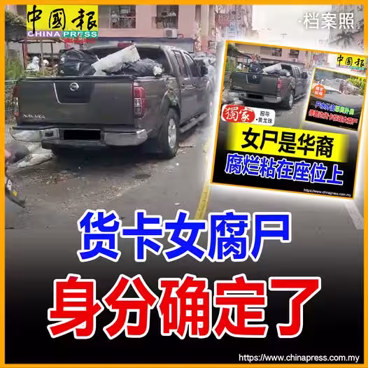 (吉隆坡26日訊)警方調查日前在路邊貨卡發現女腐屍一案後,證實死者是外籍人,她斃命前已將近一星期沒有回家,目前仍在鑑定真正死因!