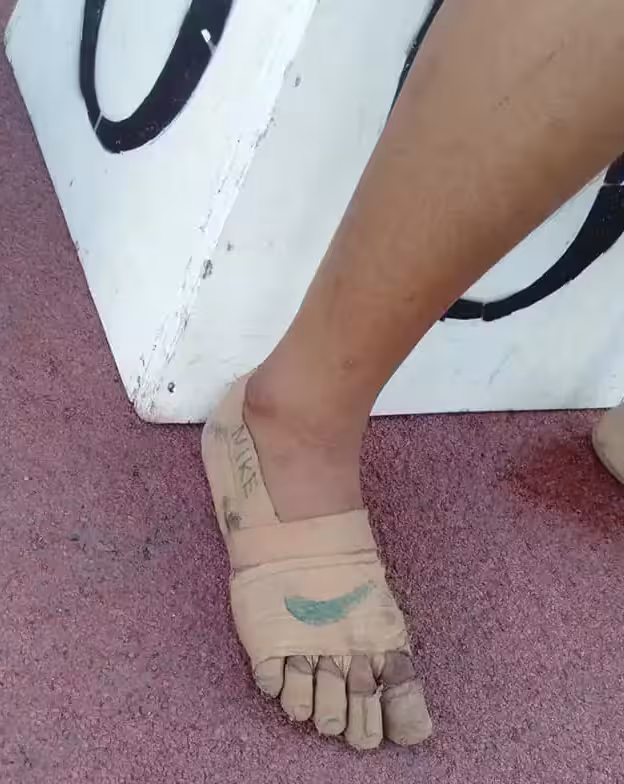 買不起球鞋,11歲女孩膠布纏腳當鞋,還畫NIKE勾勾忍痛奪3金牌,球鞋廠商得知後,結局太感人~