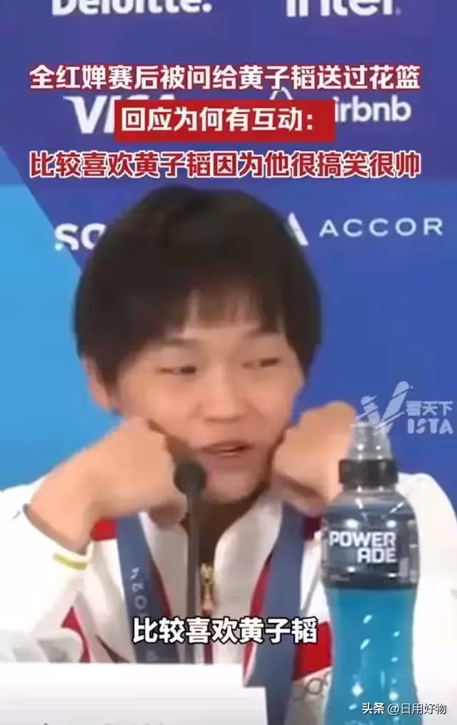 這裡的「黃莊」顯然是個小插曲,但這個小插曲卻像一顆石子投入平靜的湖面,激起了層層波浪。網友們迅速捕捉到這個細節,並熱心地幫全紅嬋把「黃莊」改成了「黃子韜」。就這樣,一場關於偶像與「小粉絲」之間的溫馨互動,在網絡上悄然展開。
