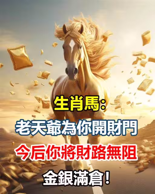 生肖馬:老天爺為你開財門,今後你將財路無阻,金銀滿倉!