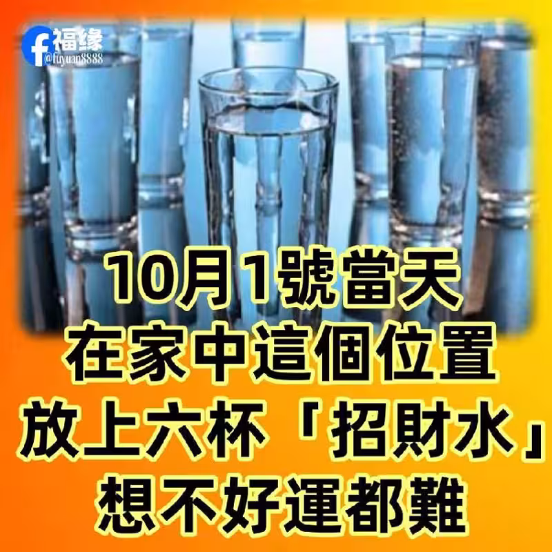 10月1號當天,在家中這個位置,放上六杯「 招財水 」想不好運都難!