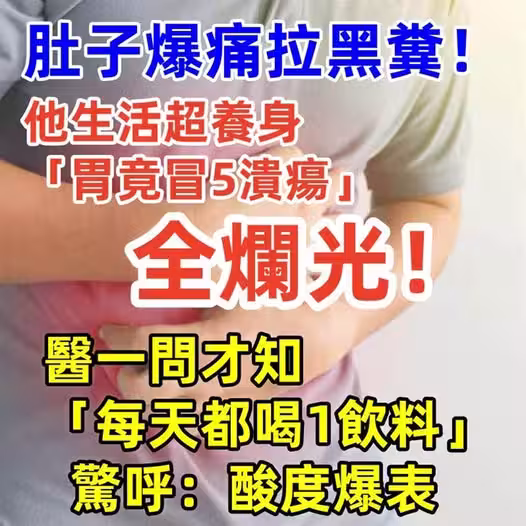 肚子爆痛拉黑糞!他生活超養身「胃竟冒5潰瘍」全爛光!醫一問才知「每天都喝1飲料」驚呼:酸度爆表