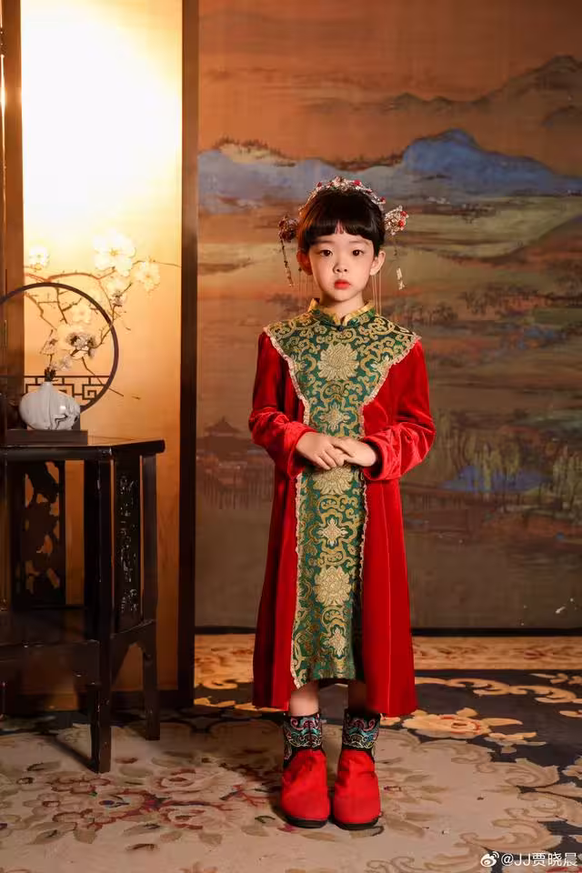 而除了這組古裝寫真外,賈曉晨還曬出小飯糰穿著黑色紗裙的美照,小傢伙戴著發箍,看起來就像是一位小公主,不少網民看後都紛紛點贊,稱小飯糰完全就是「醜小鴨變天鵝」的蛻變,對其顏值也是進行了高度的讚美。