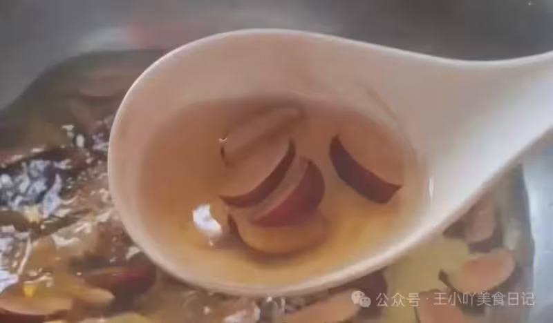 煮到湯汁微黃,紅棗香甜味飄出時關火。