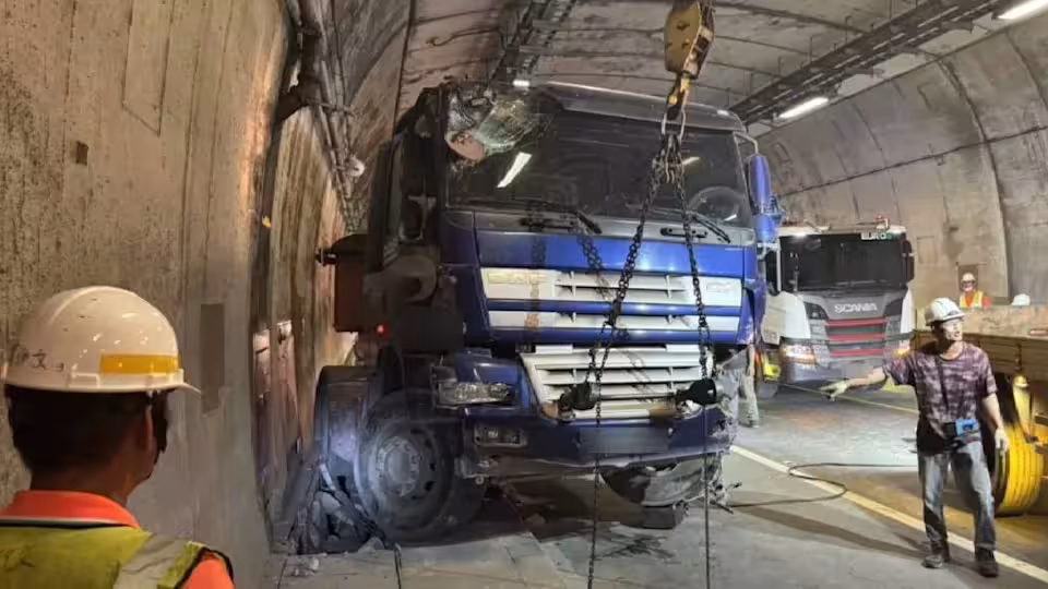 砂石車東澳隧道猛撞小客車再撞牆壁 民眾驚呼「沒事沒事」