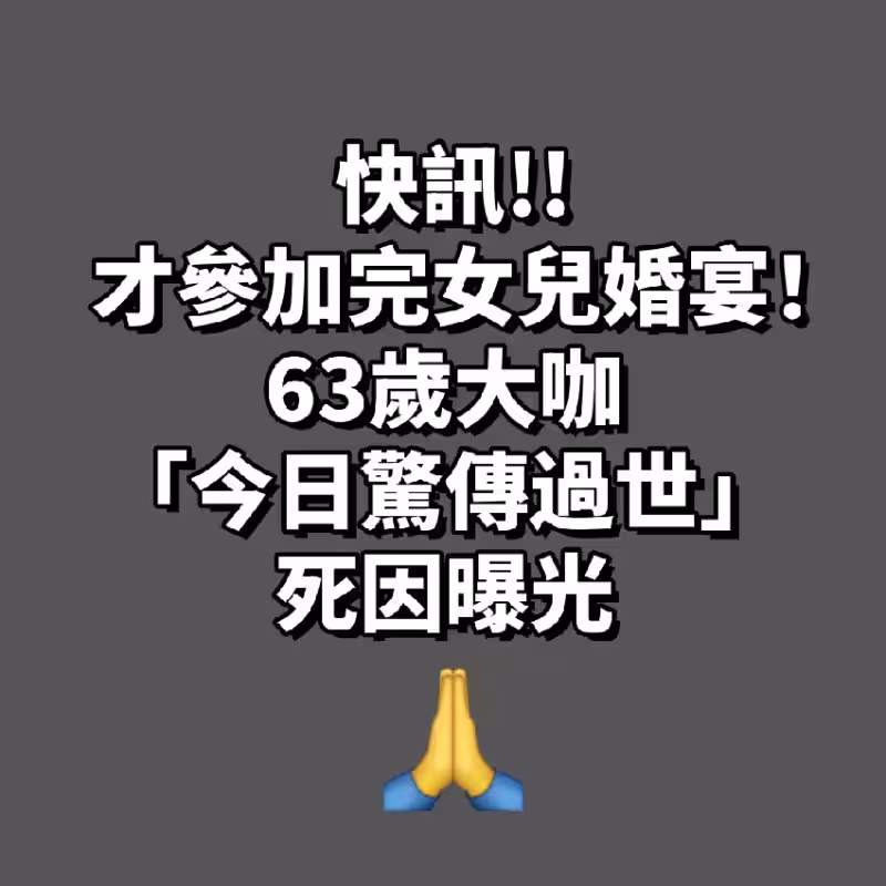 快訊/才參加完女兒婚宴!63歲大咖「今日驚傳過世」死因曝光