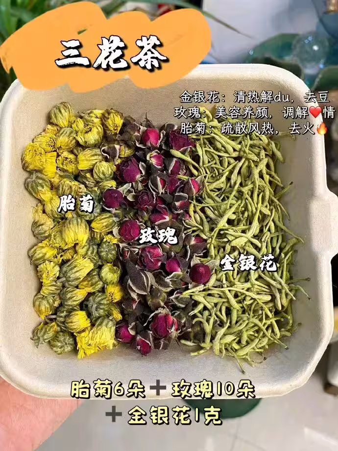 7. 三花茶:精選三種花材搭配,疏肝解郁、舒緩情緒,壓力大時喝一杯,身心都能靜下來。