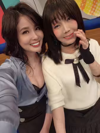 」畫面里,她穿著緞面襯衫、小露酥胸,旁邊的女子則留著空氣劉海、打扮日系可愛,乍看之下似乎有些眼熟,卻又認不出是哪位女星。