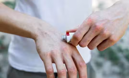 有眼尖的網友放大照片後發現:女子裸露的手背上布滿了可怕的水泡和紅斑,傘骨上貼著局部醫療警示貼紙。