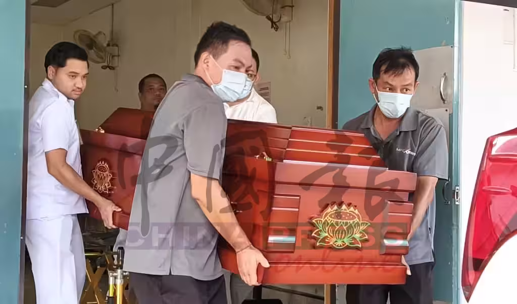 死者的父親在目睹棺材的那一刻,眼神透露無比哀戚,隨後雙手合十看著殯葬工作者將李文瀚棺材抬上靈車。