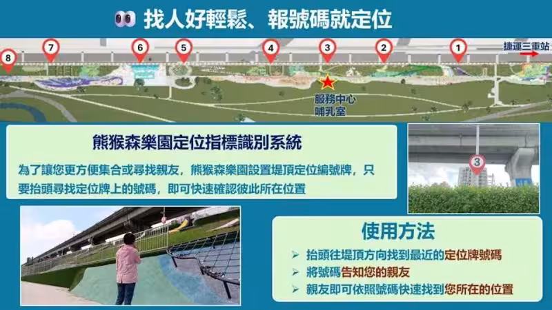 新北大都會公園是新北市最大的公園,面積有424公頃,位於三重、新莊、五股、蘆洲之二重疏洪道,為防洪兼具休閒遊憩功能之公園。內部還有許多設施提供給大小朋友玩樂,以森林派對嘉年華為設計概念,共設置31座溜滑梯及100組游具,從空中俯瞰呈現天空、山嶽、森林與溪流等多元主題,且地點就位在捷運周邊,交通非常方便。