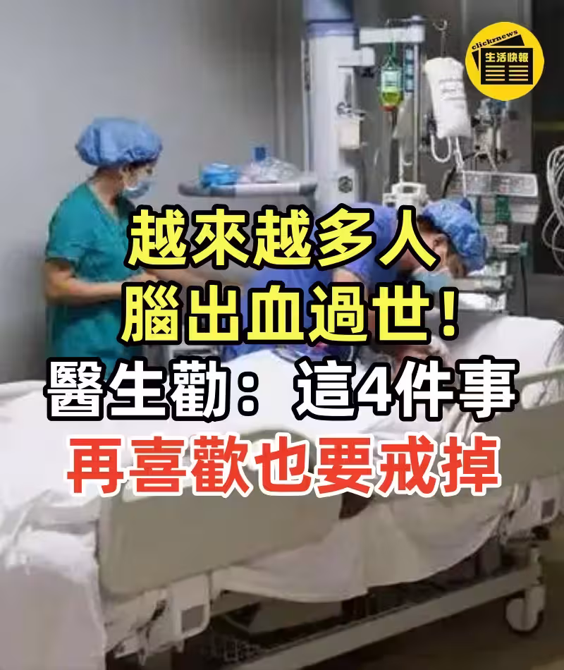 越來越多的人腦出血過世!醫生苦勸:這4件事,再喜歡也要戒掉