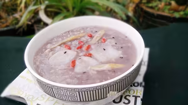 3. 鍋中適量冷水,倒入黃芪,煮開後放米,山藥切片一起下鍋煮;