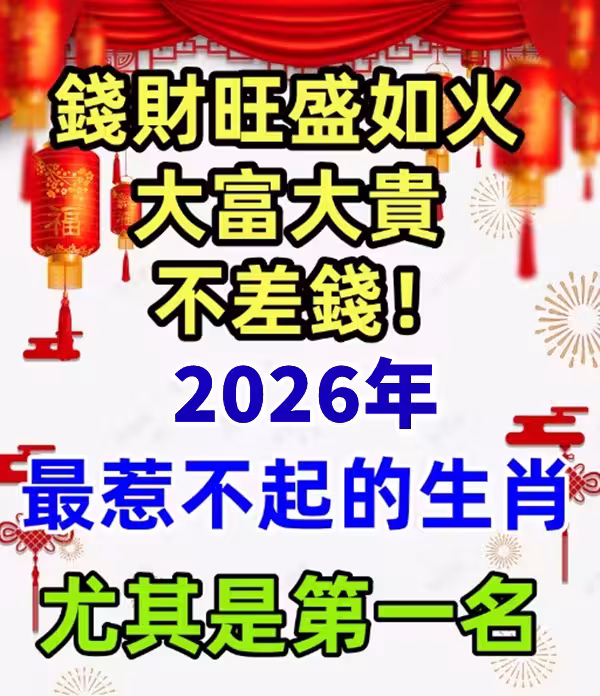 錢財旺盛如火,大富大貴不差錢!2026年最惹不起的生肖,尤其是第一名