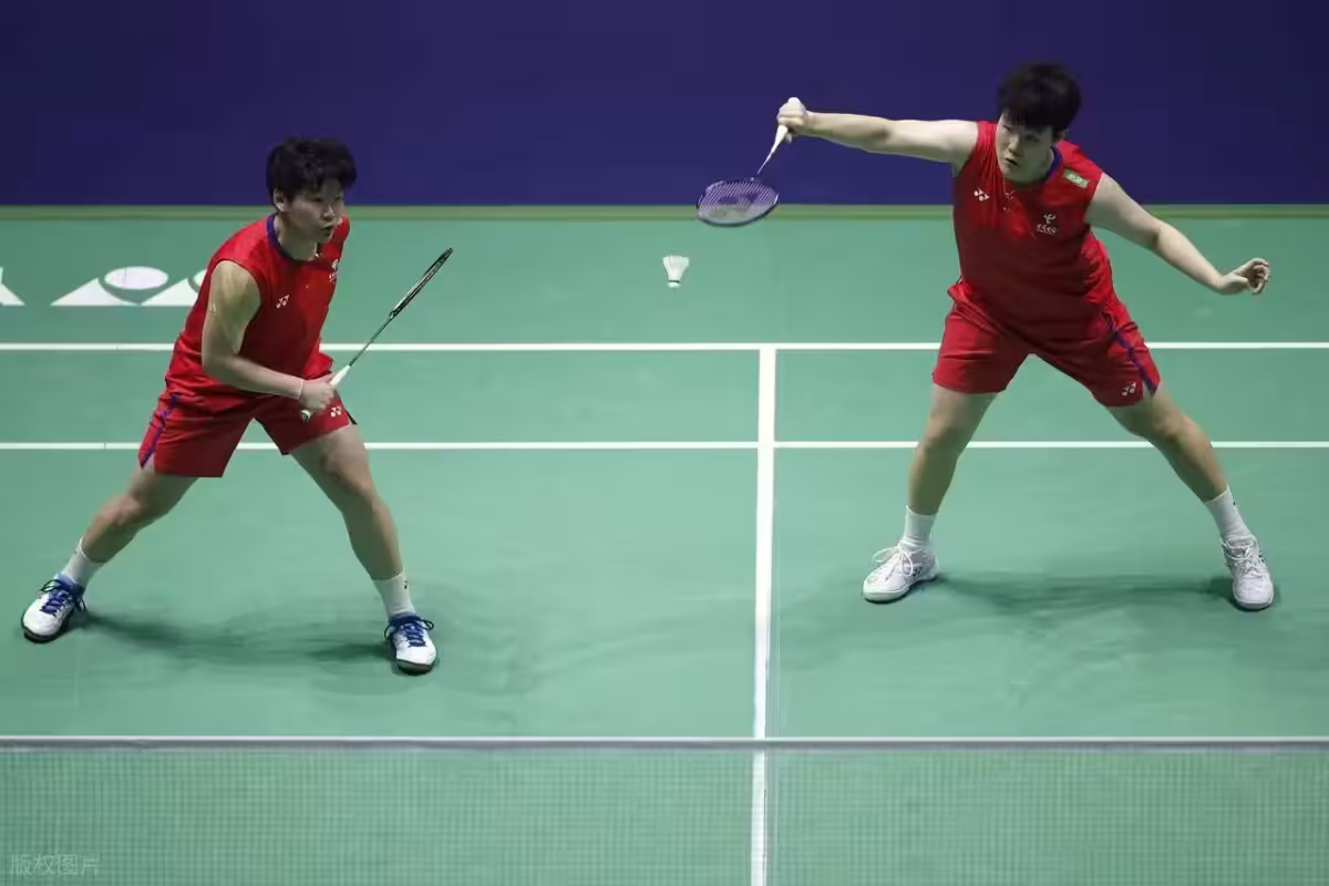女雙世界第一劉聖書/譚寧以 21-15、15-21、15-21 被福島由紀/松本麻佑逆轉,首局劉聖書/譚寧憑藉強勢進攻和網前壓制,速度占優,多拍銜接流暢,限制日本組合後場進攻。