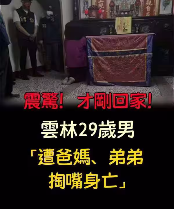 震驚!!剛回到家,雲林29歲男「遭爸媽、弟弟掏嘴身亡」