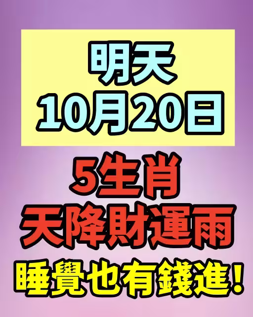明天10月20日,5生肖天降財運雨, 睡覺也有錢進!