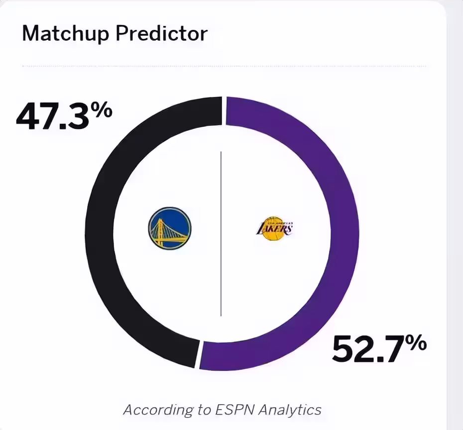 揭幕戰!湖人大戰勇士誰能贏?ESPN給出勝率預測