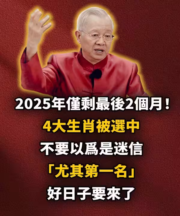 2025年僅剩最後兩個月!四大生肖被選中,不要以為是迷信「尤其第一名」好日子要來了