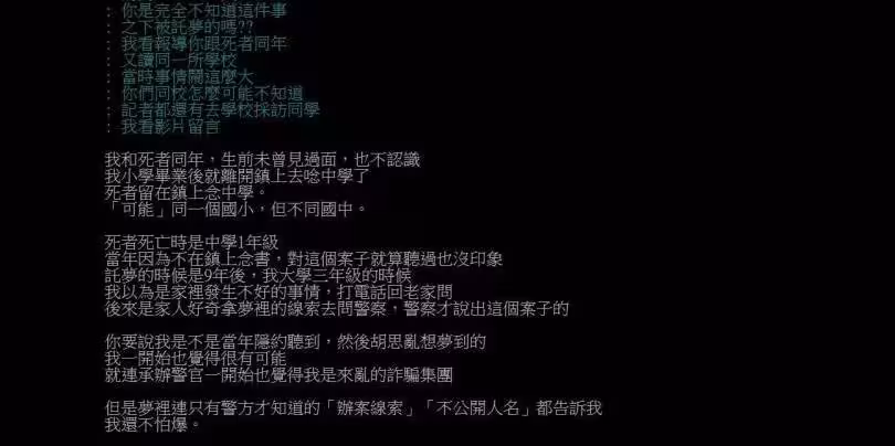 尤其男大生的描述夢中女孩坦言「是我的親戚做的」,也照印象「畫出來的生活照」,幾乎都跟線索吻合,然而就在希望重啟案件時,崔曉菁的外婆竟然拍桌大喊:「不要辦!」發現失態後,竟還變臉改口:「不要想起悲傷的事!」啟人疑竇。