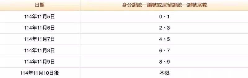 114年11月5日起至114年11月10日止完成登記並經檢核成功者,款項將自114年11月11日18時起至11月12日,依各銀行作業程序陸續入帳。