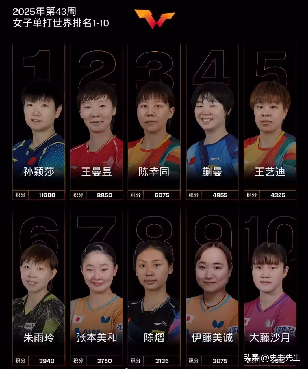 其中孫穎莎11600分在榜單中十分搶眼,遙遙領先這四個字用在她的身上一點也不違和。