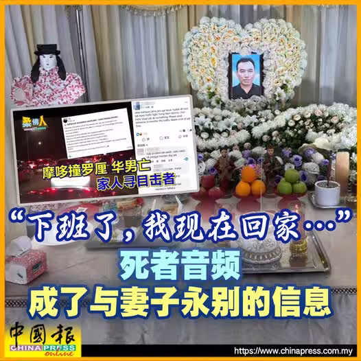 (新山25日訊)「下班了,我現在回家…」;死者發給妻子的最後一則音頻,卻成為永別的信息,永遠再回不了家。