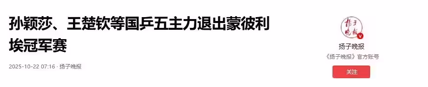 世界乒聯剛發的公告里,明明白白寫著孫穎莎、王楚欽等五個核心全都不打蒙彼利埃冠軍賽了,連日本的主力戶上隼輔也跟著退了,賽事的競爭力一下就降了不少。
