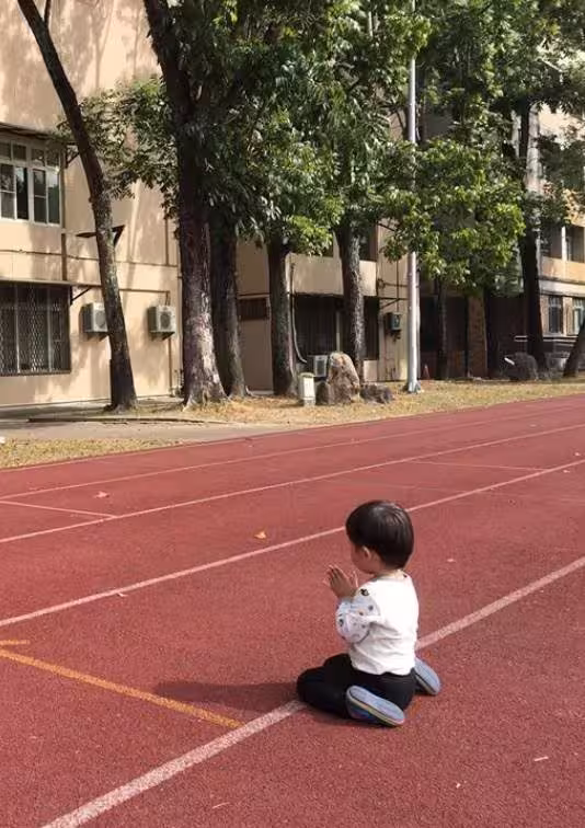 有帶過小孩就知道,他們學會一件事之後很常會認真練習,重複到爸媽都嫌煩了,例如帶小朋友玩123木頭人,他們如果覺得好玩就會一直玩,爸媽快累壞都不能休息XD 先前一位媽媽帶兒子出門,結果兒子在操場上突然下跪拜拜,但他尊敬的對象讓媽媽又好笑又無奈。