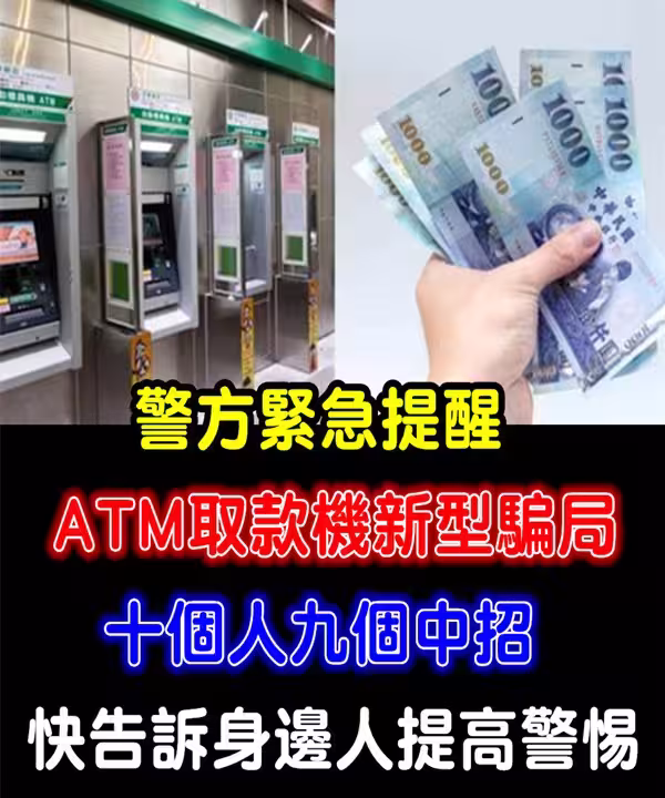 警方緊急通知:ATM取款機新型「騙局」 十個人九個中招!快告訴身邊所有人提高警惕