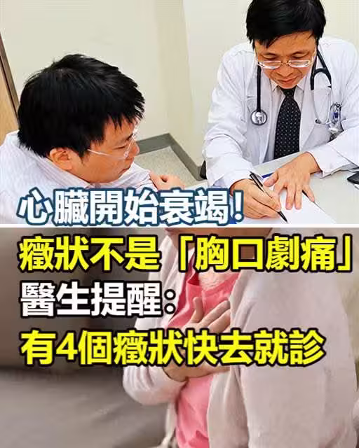 心臟開始衰竭!不是「胸口劇痛」,醫生:若有4個症狀快去就診