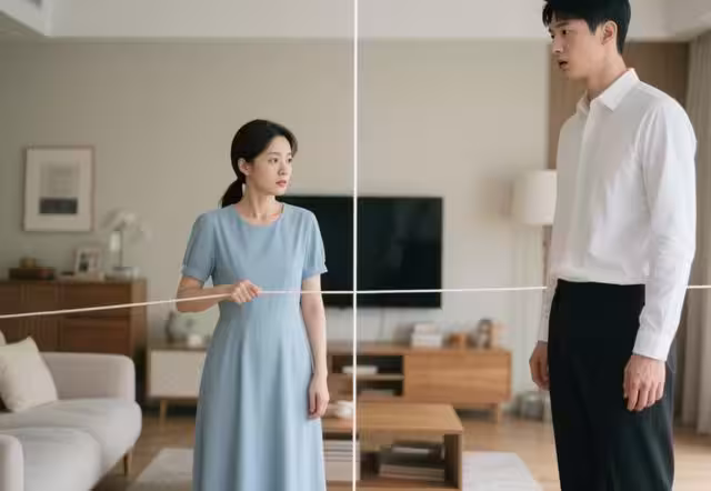 兩個人像陌生人一樣生活在同一個屋檐下,各做各的事,各花各的錢,除了必要的交流,幾乎沒有其他互動。